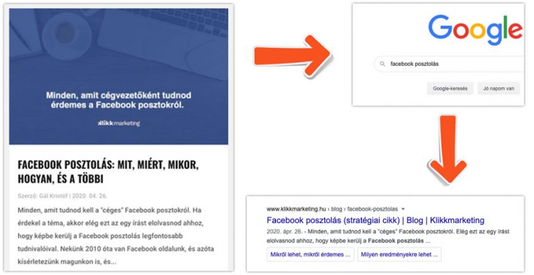 A keresőoptimalizálás célja, hogy a Google organikus (azaz leegyszerűsítve: ingyenes) találatai között a lehető legjobb helyezéseket érje el a honlapunk, hogy a lehető legtöbb látogató jöjjön onnan a honlapunkra. Tulajdonképpen megteheted, hogy minden egyes blog bejegyzésednek legyen egy keresőoptimalizálás célja is. Mondhatnám például, hogy a Facebook posztolásról szóló nemrég publikált írásomnak célja az is, hogy a "facebook posztolás" (és hasonló) keresésekre azt a cikket találd meg.